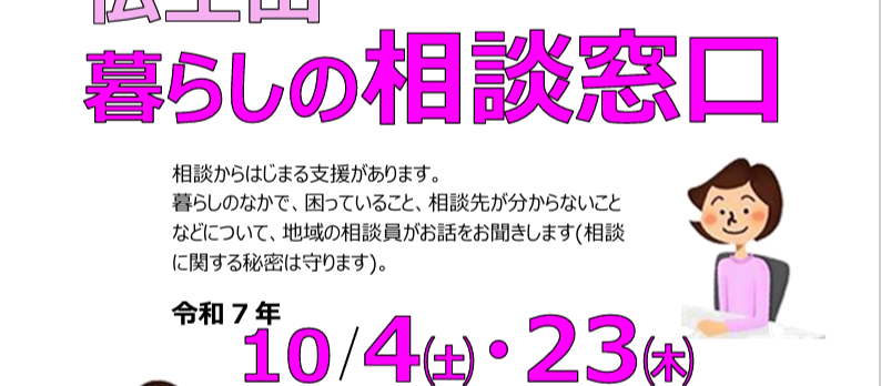 相談窓口は、原則毎月第1土曜日と第4木曜日の10時~12時に開設します。