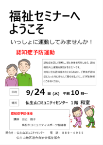 9月24日(水)10時~認知症予防体操を開催します。