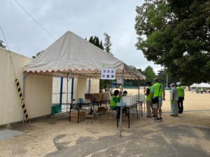 無事終了しました。今年も、去年に引き続き地区の敬老会は記念品のみの受け渡しになり、金婚式のみ長寿会主催で開催しました。台風が近づくなか、雨、風を気にしながらの設営、受け渡し、撤収でしたが、なんとか雨も本格的に降らず、無事終了しました。朝早くより、記念品の受け渡しや交通整理、警備などお手伝いだきましたボランティアの皆様、大変お疲れさまでした。