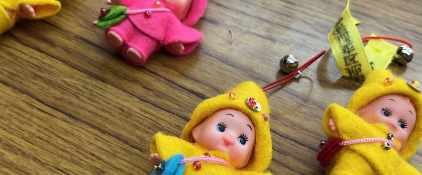 仏生山小学校6年生の修学旅行時に毎回プレゼントしている、キューピー人形のマスコット。