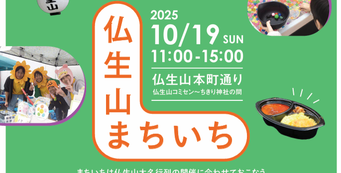 ことしも仏生山大名行列が10月19日(日)に開催されるのに合わせて、本町通り沿いでマルシェイベント「仏生山まちいち」を開催することになりました。