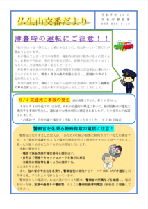仏生山交番だより10月号を掲載します!