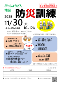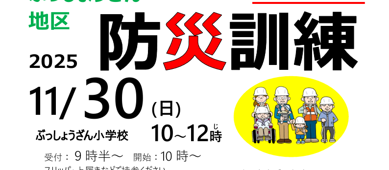 11月30日(日)10時~12時 仏生山小学校体育館・運動場にて、地区防災訓練を実施します。