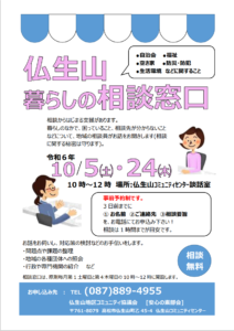 令和6年10月5日(土)、24日(木)10時~12時 (仏生山コミュニティセンター談話室にて)