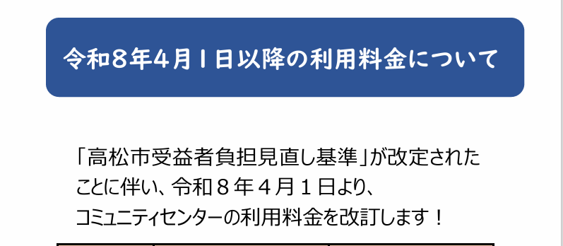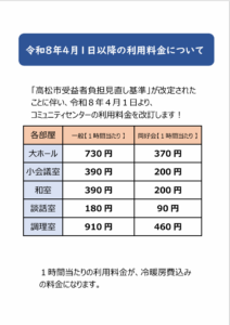 令話8年4月1日以降のコミュニティセンター利用料金の改定について