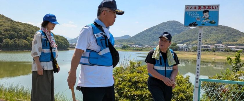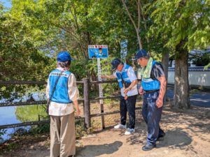 地域安全推進委員、池(平池、前池、住蓮寺池)の看板の点検や、公園の危険な場所を確認しました。