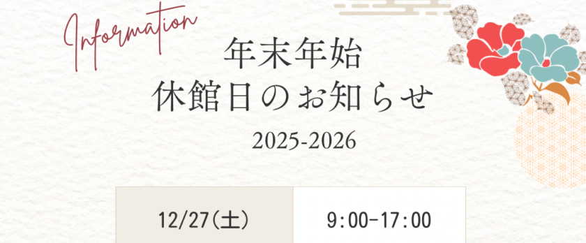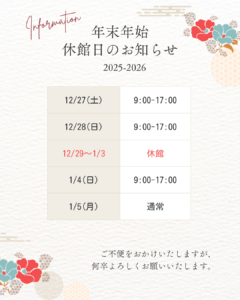 12月27日(土)は17時以後の利用がないため、17時で閉館いたします。
