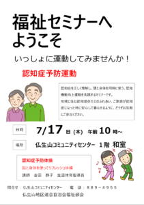 7月17日(木)10時~認知症予防体操を開催します。