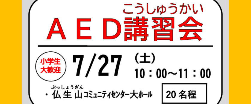 7月27日(土)10時~11時 仏生山コミュニティセンターにてAED講習会を開催します。
