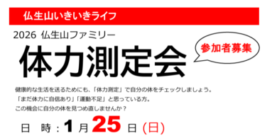 1月25日(日)9時~12時仏生山ファミリー「体力測定会」を実施します。…